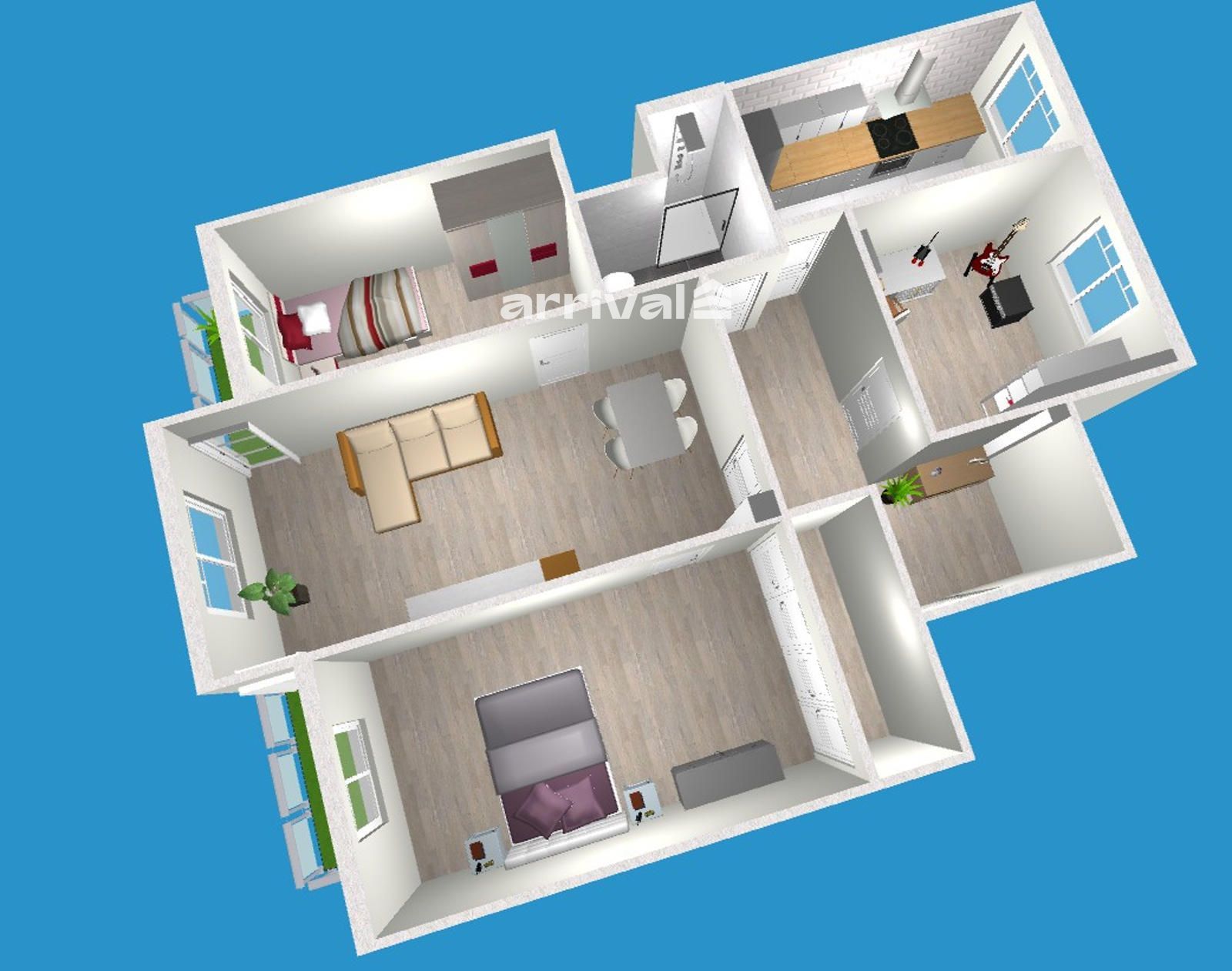 Ref. 1444 Superficie 85 m2 Terraza 4 m2 Habitaciones 3 Baños 1 Altura 3